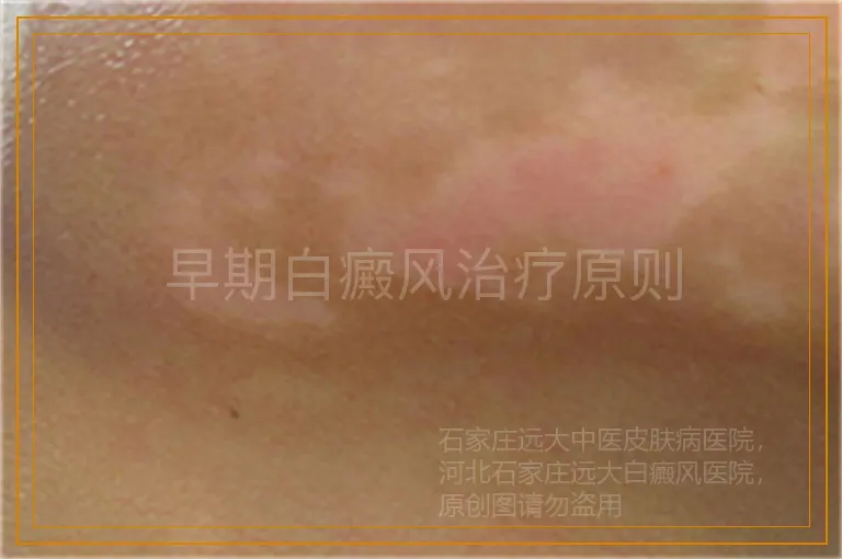 因此,早期诊断,早期治疗,是治疗白癜风病的一个重要原则。需要指出的是,白癜风的初发皮损往往为点状、小片状的减色斑,境界模糊,隐约可见,与正常皮肤不易区分,易被误诊为白色糠疹或汗斑等,由于失治、误治、给患者带来终生痛苦。相反亦有由于面部白色糠疹,无色素痣,贫血痣等被误诊为白癜风而长期治疗不效,给患者带来沉重的经济负担和精神压力,这样的例子在临床上屡见不鲜。这是皮肤科门诊医师应当引起高度重视的问题。